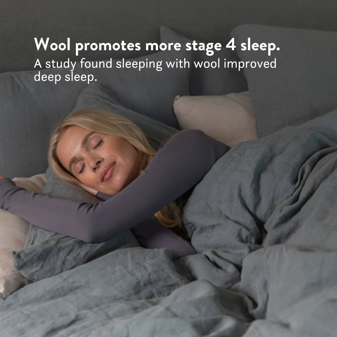 Une étude a également montré que dormir avec des produits en laine permet d'obtenir jusqu'à 25 % de sommeil régénératif de stade 4 en plus. Cela signifie que vous vous réveillerez plus reposé et aurez plus d'énergie dans votre journée.